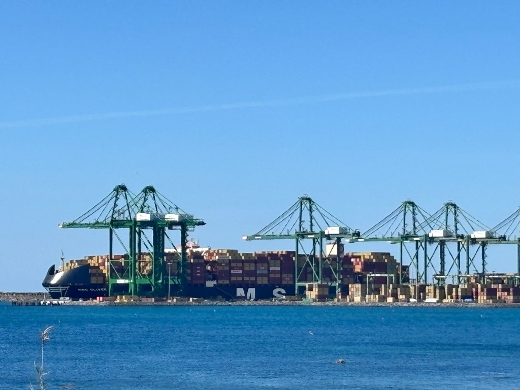 The huge tanker in the port was absolutely massive, dominating the horizon and growing bigger and bigger as we approached.