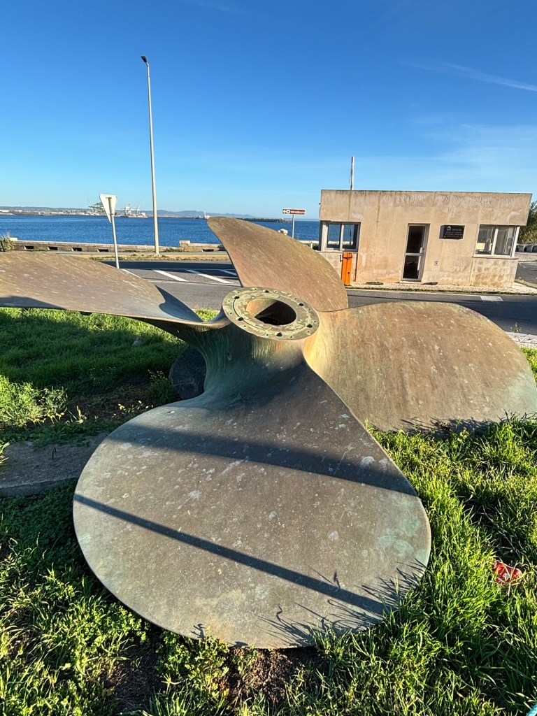 We walked down to the fishing port past the works’s biggest propeller.