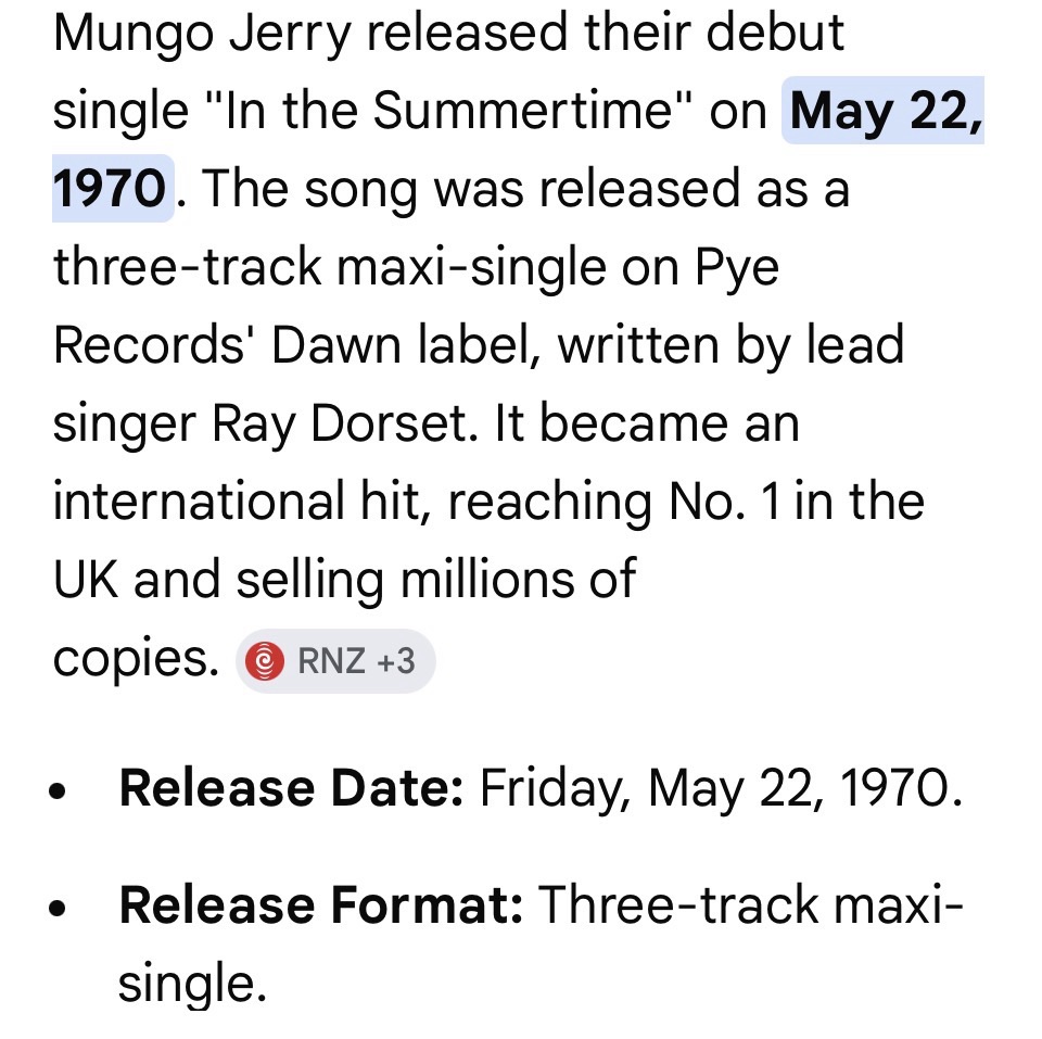 Mungo Jerry released the classic “In the summertime” in 1970.
