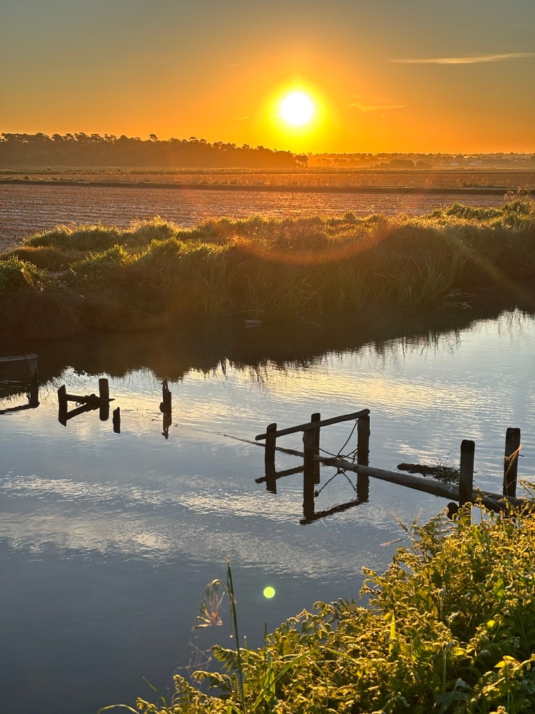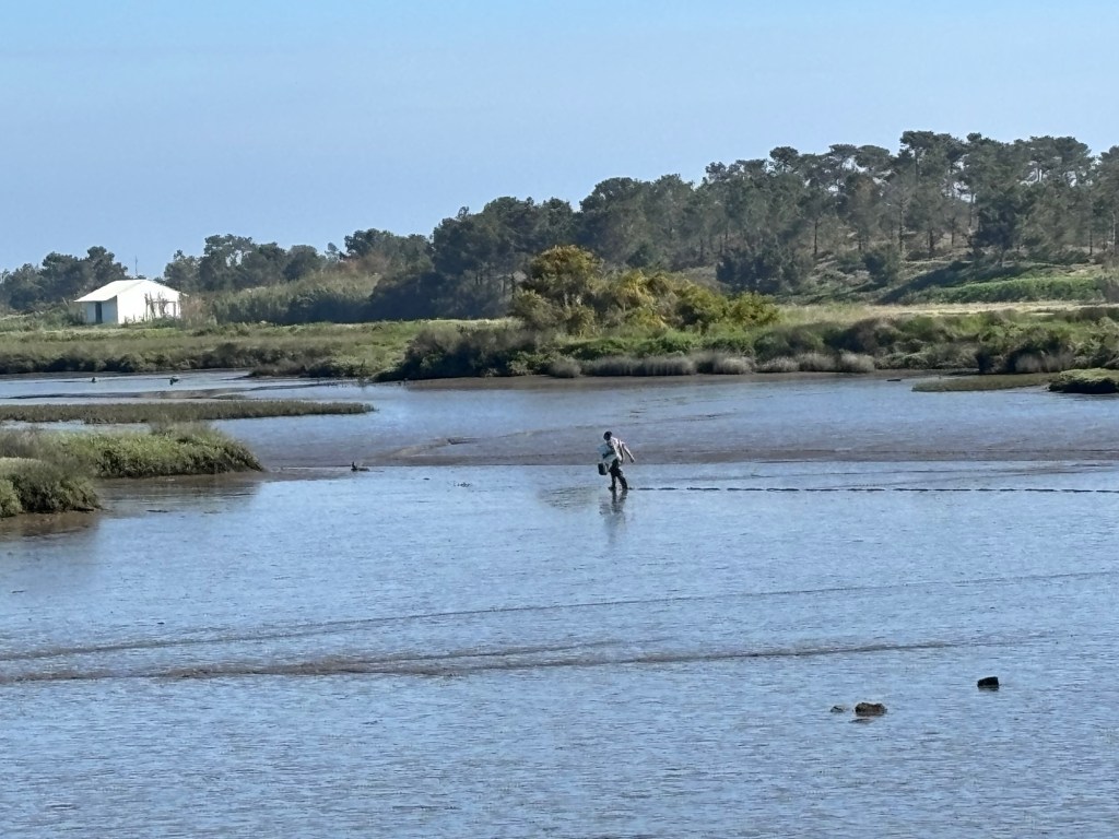 5 minutes later we were walking on a hard sanded trail that took us for 6 miles across the wet rice fields between Lagoa Formosa and Comporta.