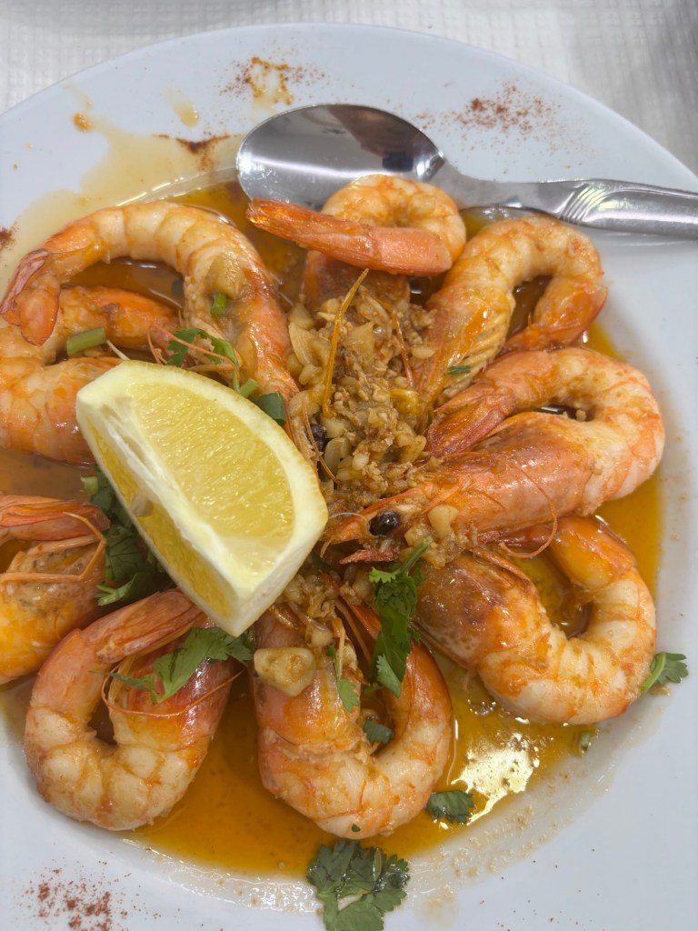 A 12 minute walk rewarded us with a stunning prawn dinner.