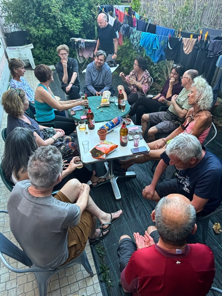 We sat and chatted as a group, with 4 ladies from Australia, Glenn from Hertfordshire, (who’s daughter Claire, trained to be a teacher in the same university and year as Nicky my wife), 3 pilgrims from France, Eva from Germany, Michael from California and Evan from Norwich.