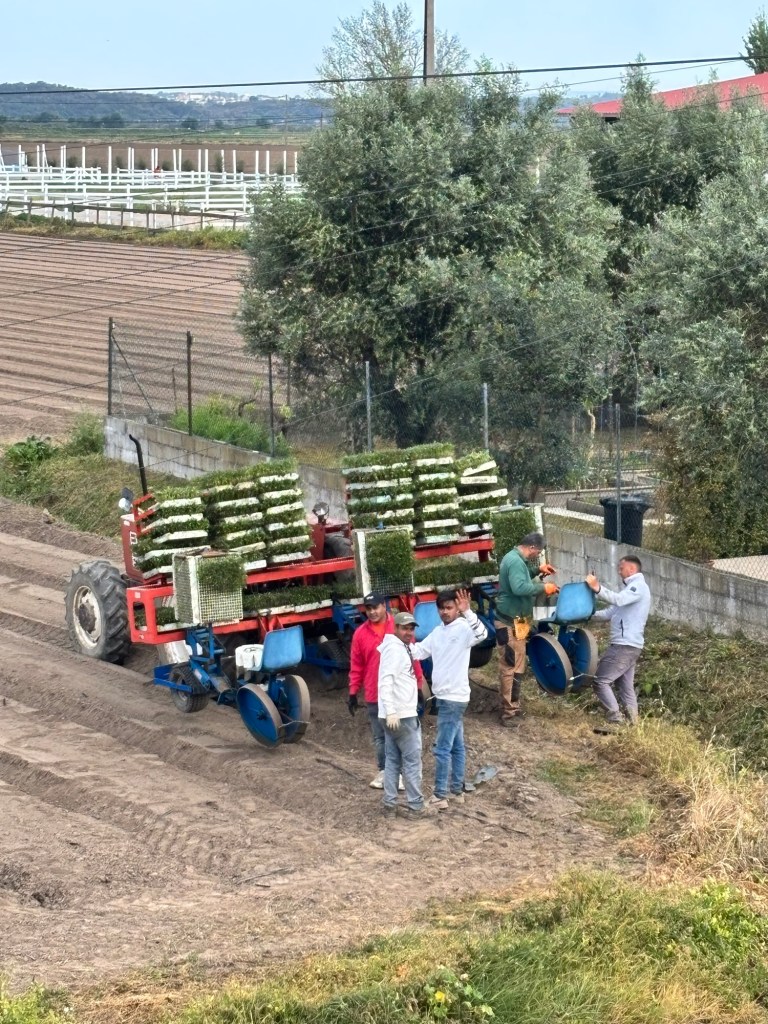 Local workers, preparing to plant trays of seedlings in massive fields, gave me a cheery wave.