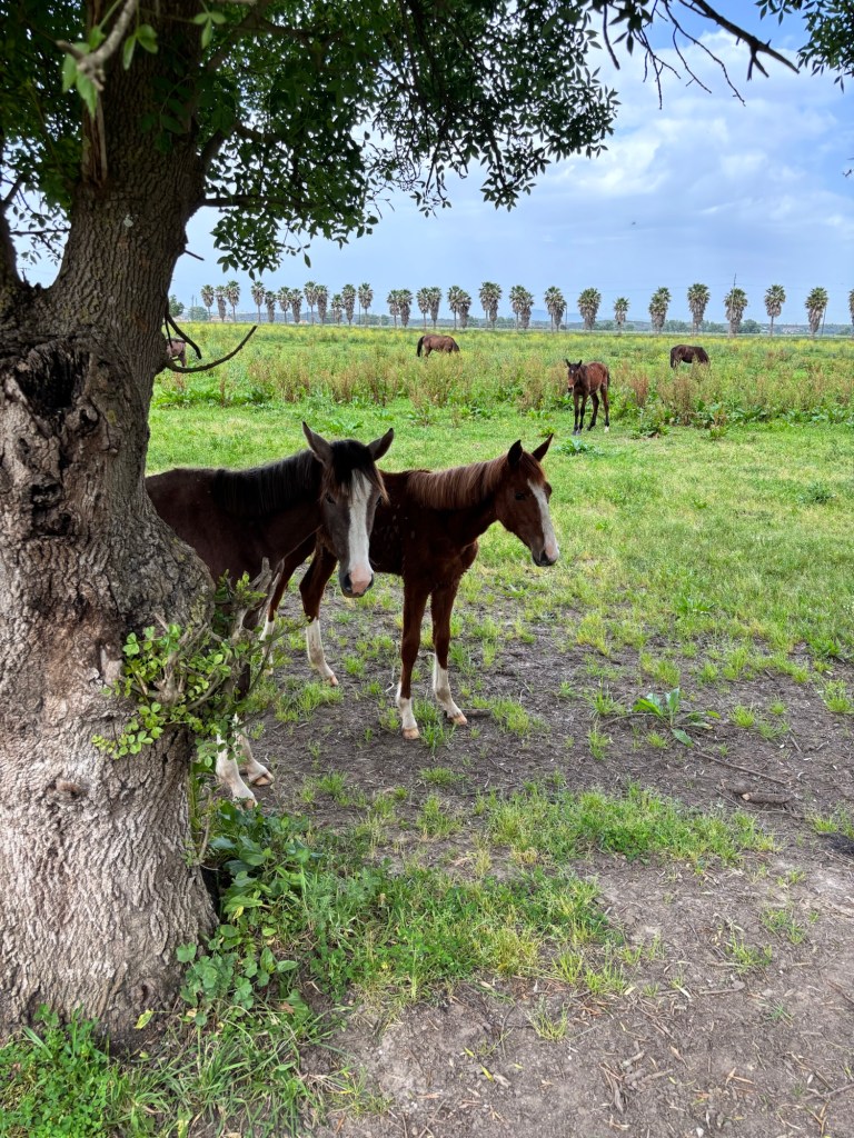 Horses cantered in the breeze.