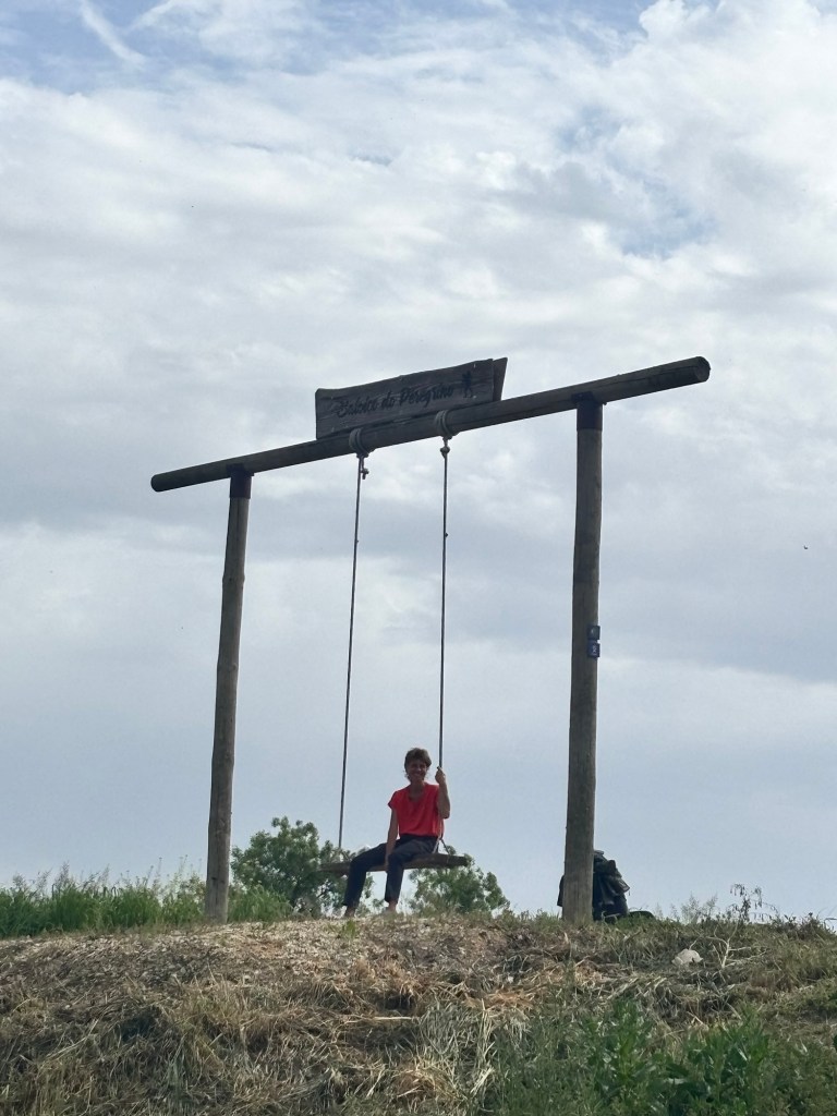 I saw Eva from Germany, back on the flood bank, enjoying a private swing.