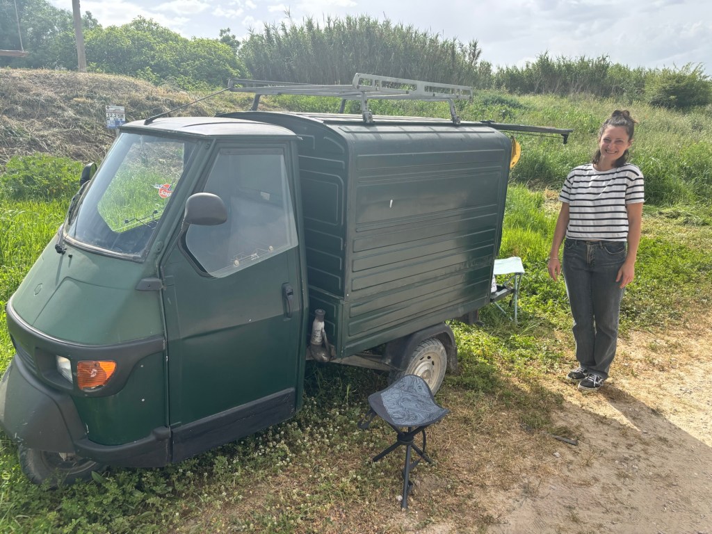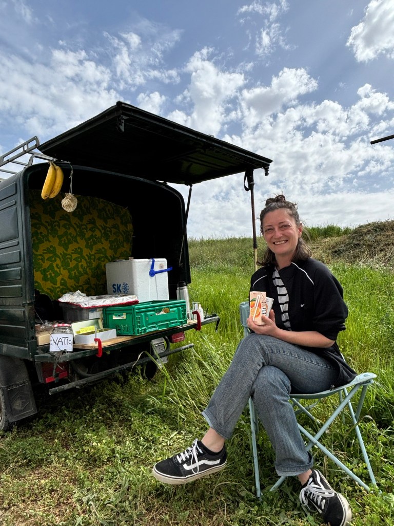 Sat trail side alongside the Vespa she had travelled in, Paola was selling snacks and drinks by donation only.