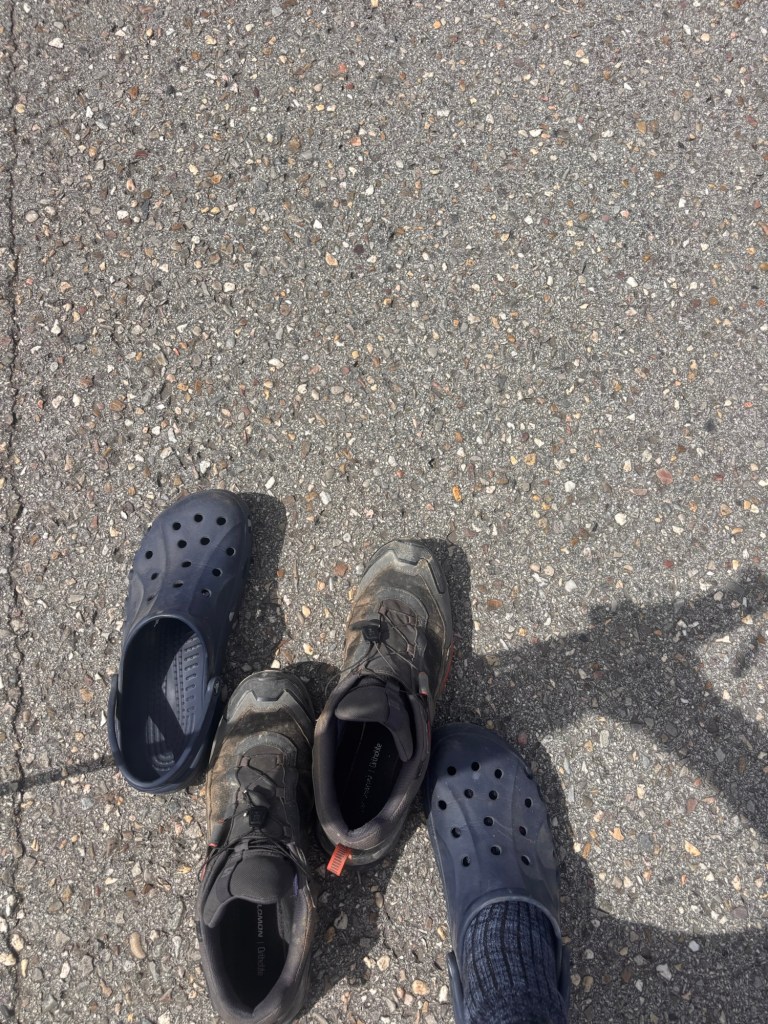 Walking in Crocs.