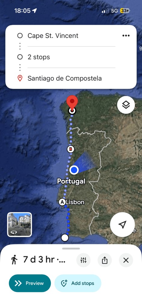 He started the Camino Portuguese in Lisbon, last Saturday.