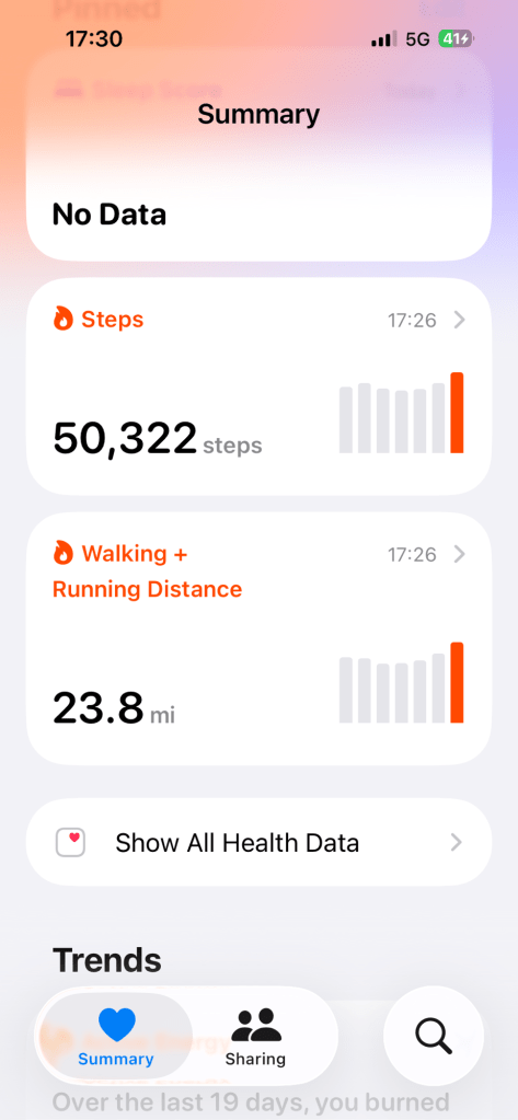 That’s a lot of miles, km or steps!