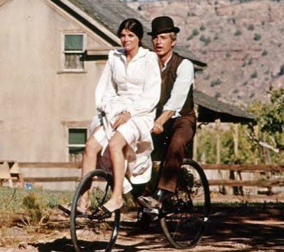 The iconic scene when Paul Newman rides a rusty old bike around a yard, with his girlfriend Etta, clinging on to the front (for a reverse ‘croggie’ or ‘backy’, depending if you hail from the north or south of Britain), – is the stuff of cinematic legend.