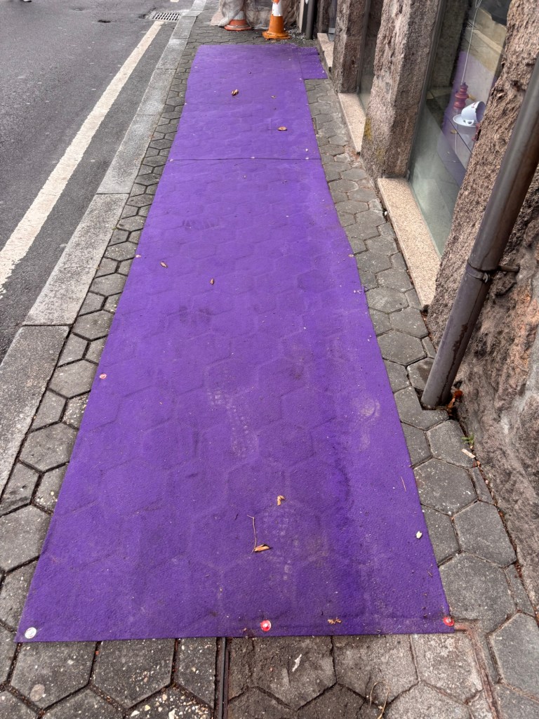 I zigged again, this time to walk along a purple carpet outside a supermarket.
