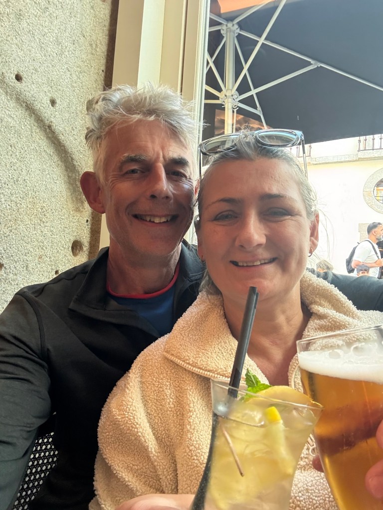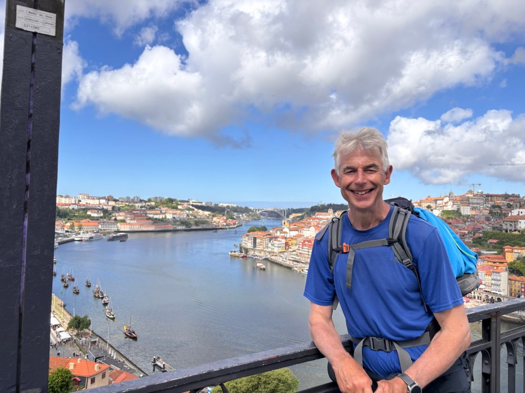 A mixture of weariness and aches and pains after 2 long, consecutive 25 mile / 42 km walks to get to this ‘Porto Pivot Point’.