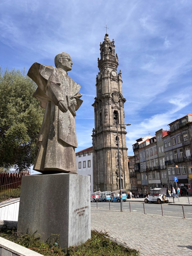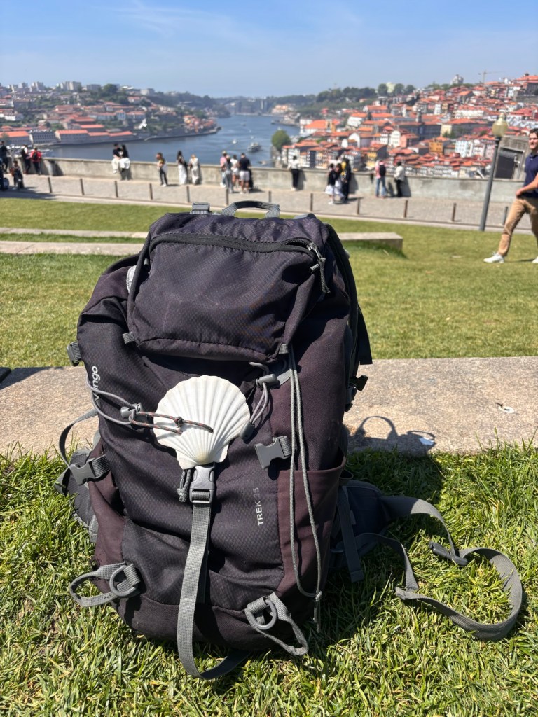 The cathedral square hosts the Camino way marker for pilgrims starting the Porto to Santiago Camino.