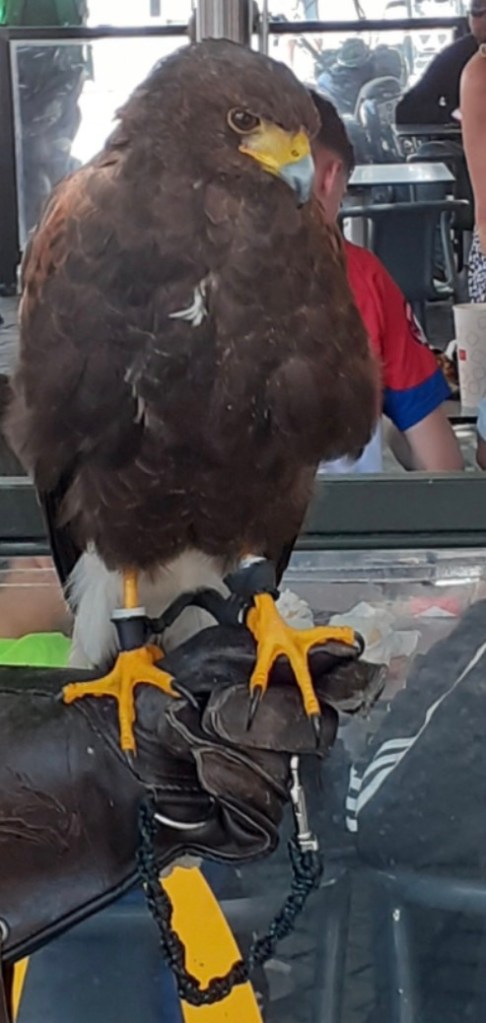 They employ a falconer and his bird of prey, specifically to keep the pigeons away, as customers munch their Big Macs outside.
