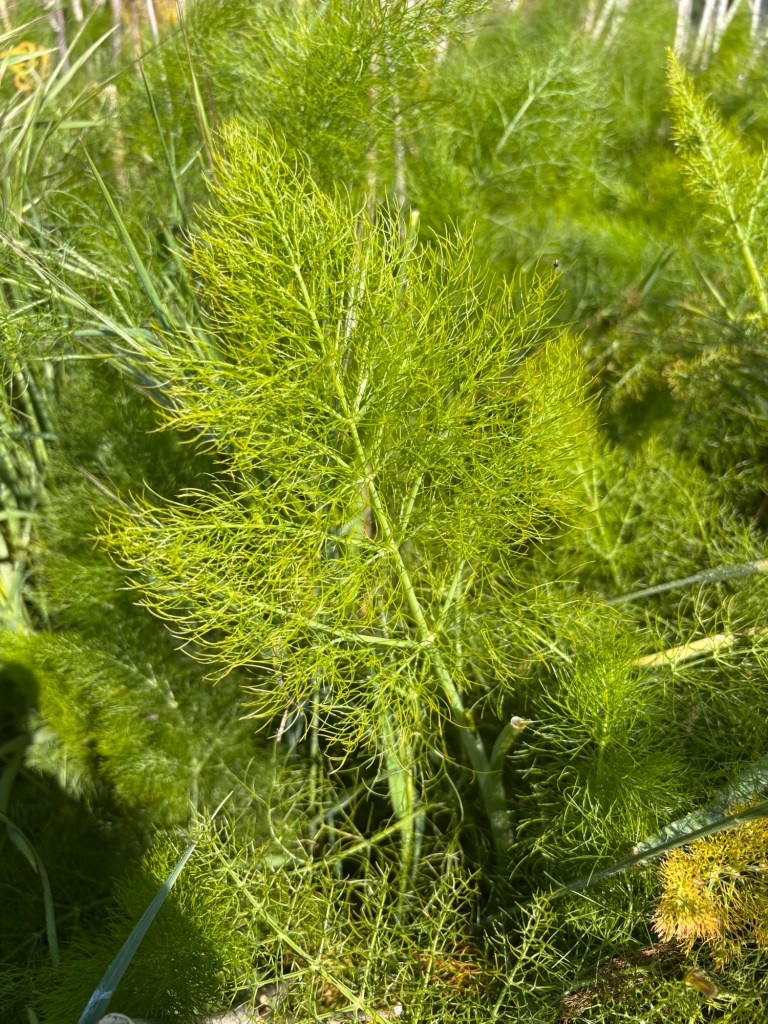 Lush green fennel grows out of tiny fissures in the face of the rocky gorge.