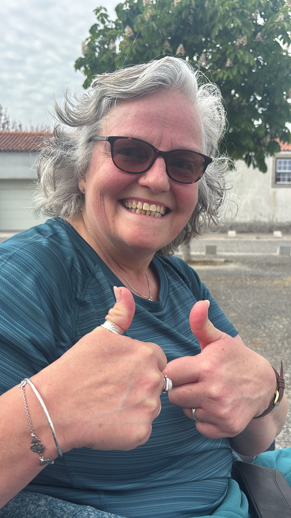I played the ‘delegation game’ and asked for artistic help as I wanted to produce a ‘Welcome to Portugal’ sign for Lizzie, when she arrived on Monday.