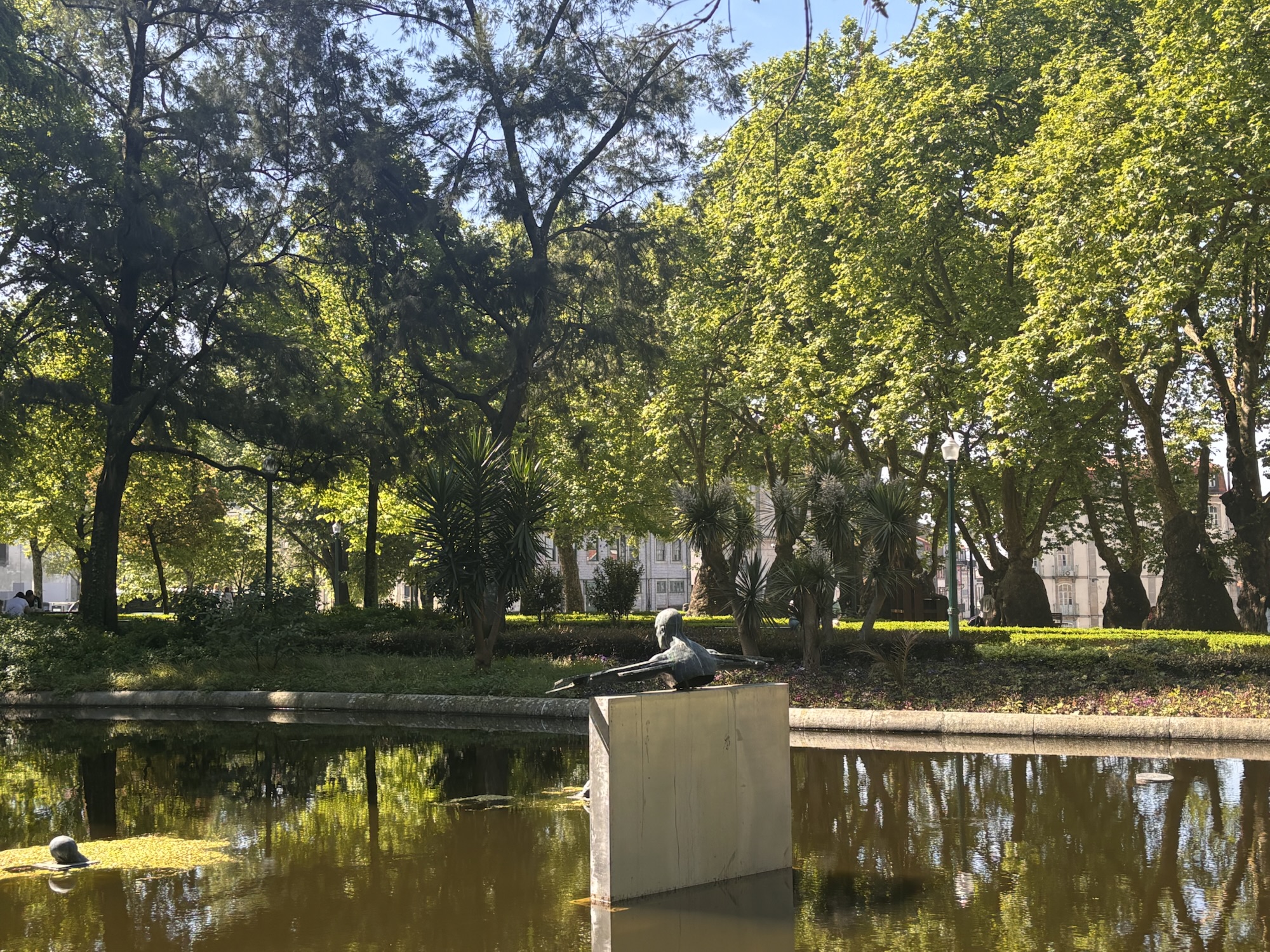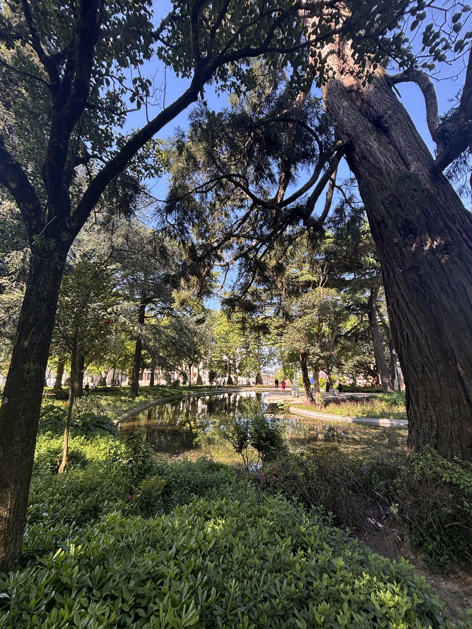 Past a beautiful, cooly shaded park, where graceful trees offered protection from the hot midday sun.