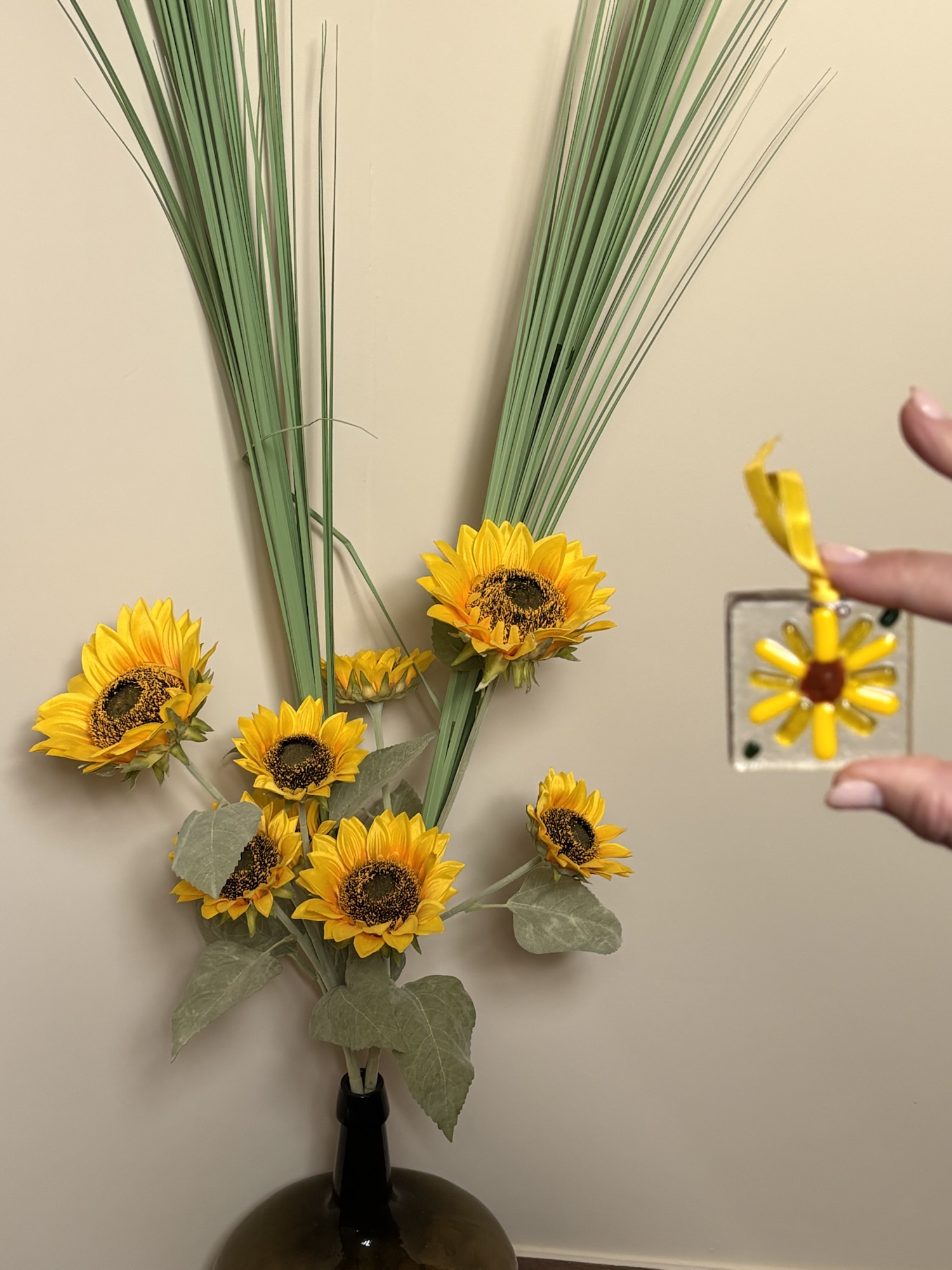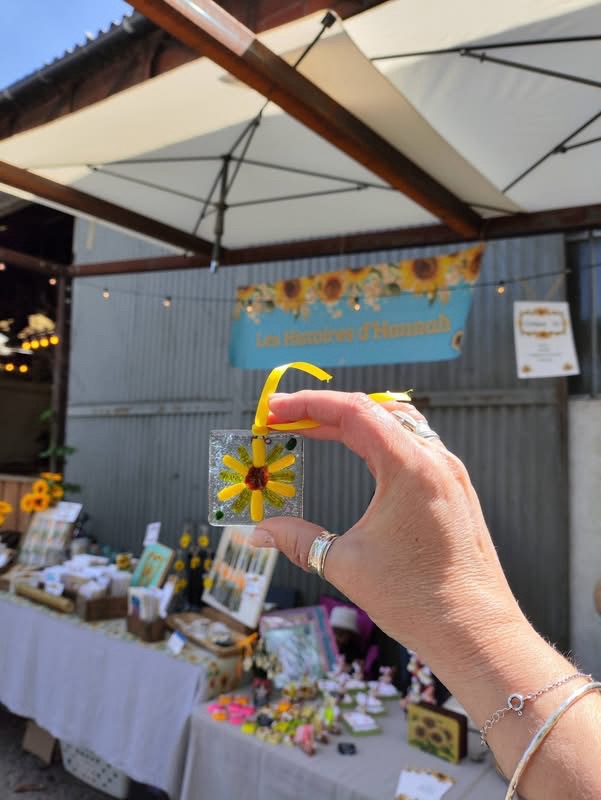 Lizzie is a glassmaker and has made these stained glass window decorations to support the work of the charity set up in Hannah’s name;