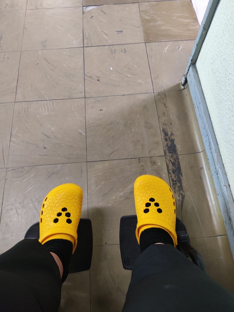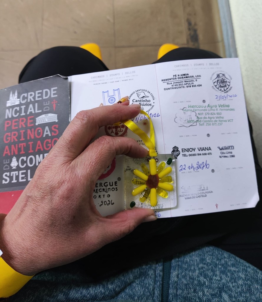 So here I am — sitting in a wheelchair, wearing my yellow Crocs, in a Portuguese hospital. Not exactly part of the plan. But I’m incredibly grateful for the care I’m receiving. They’ve even stamped my Camino credentials, which somehow helped me decide how to respond to this moment.