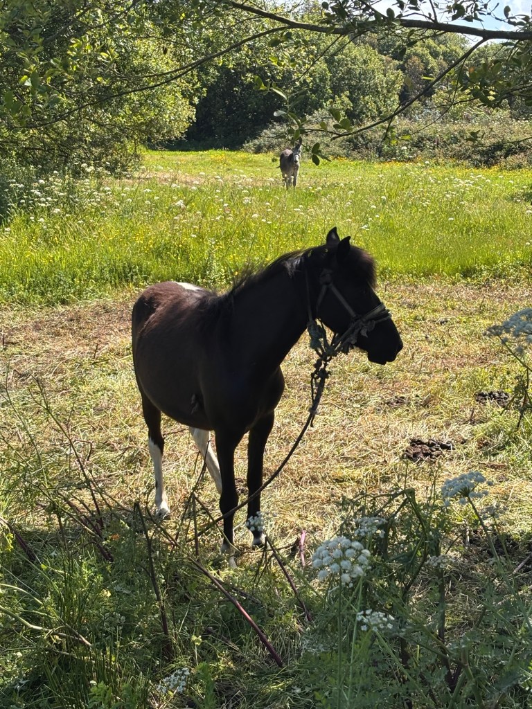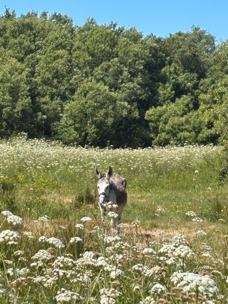 Horses and donkeys stared at us.