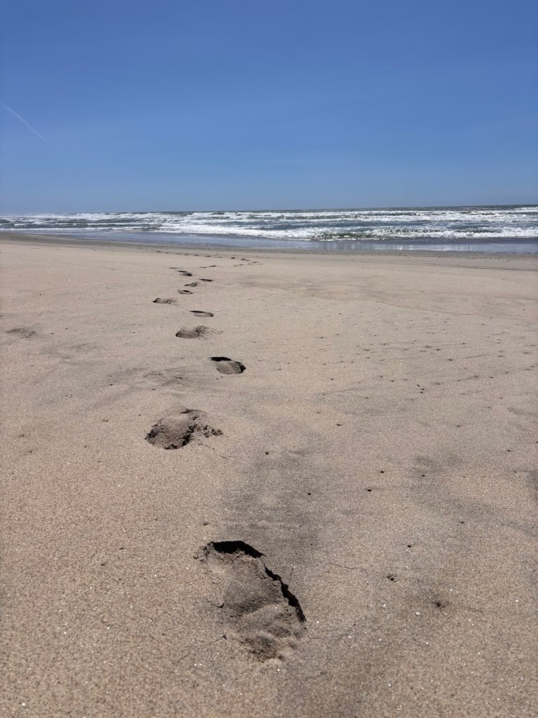 I walked barefoot in the wet firm sand with waves occasionally flushing through my feet.