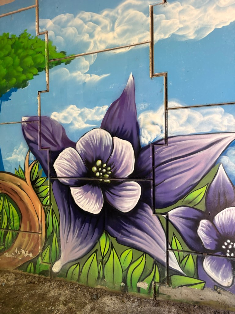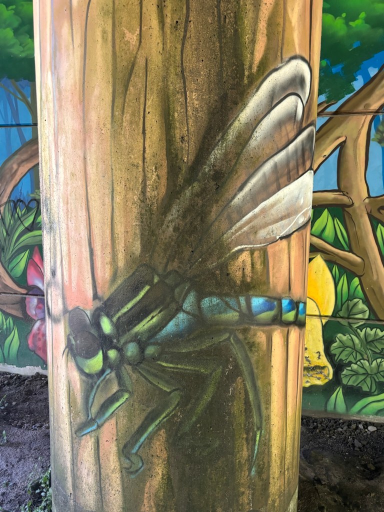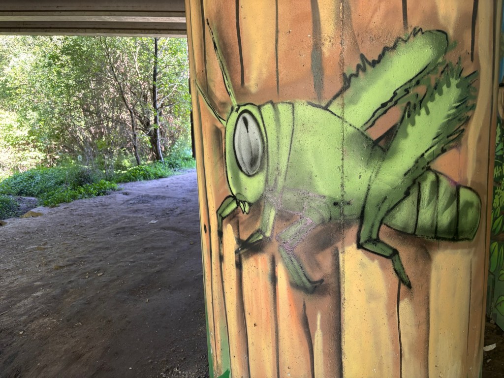 Cool street art on a motorway underpass distracted my mind from thinking about my sore feet.